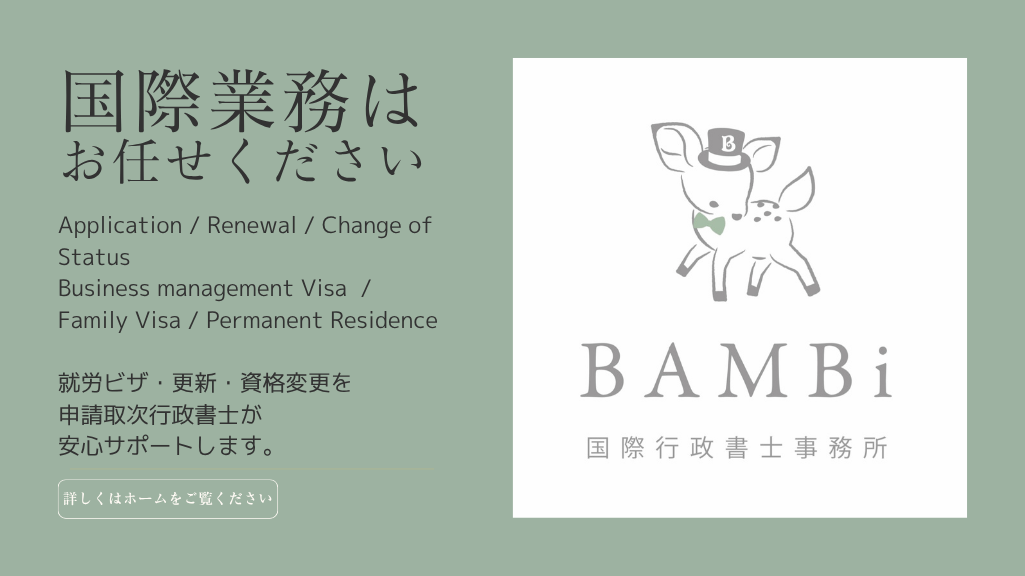 就労ビザ・更新・資格変更を行政書士が安心サポートします。VISA変更/更新、永住許可申請、帰化申請、在留資格関連、などご相談ください。難しい内容でも一度ヒアリングさせてください。英語対応可能です。